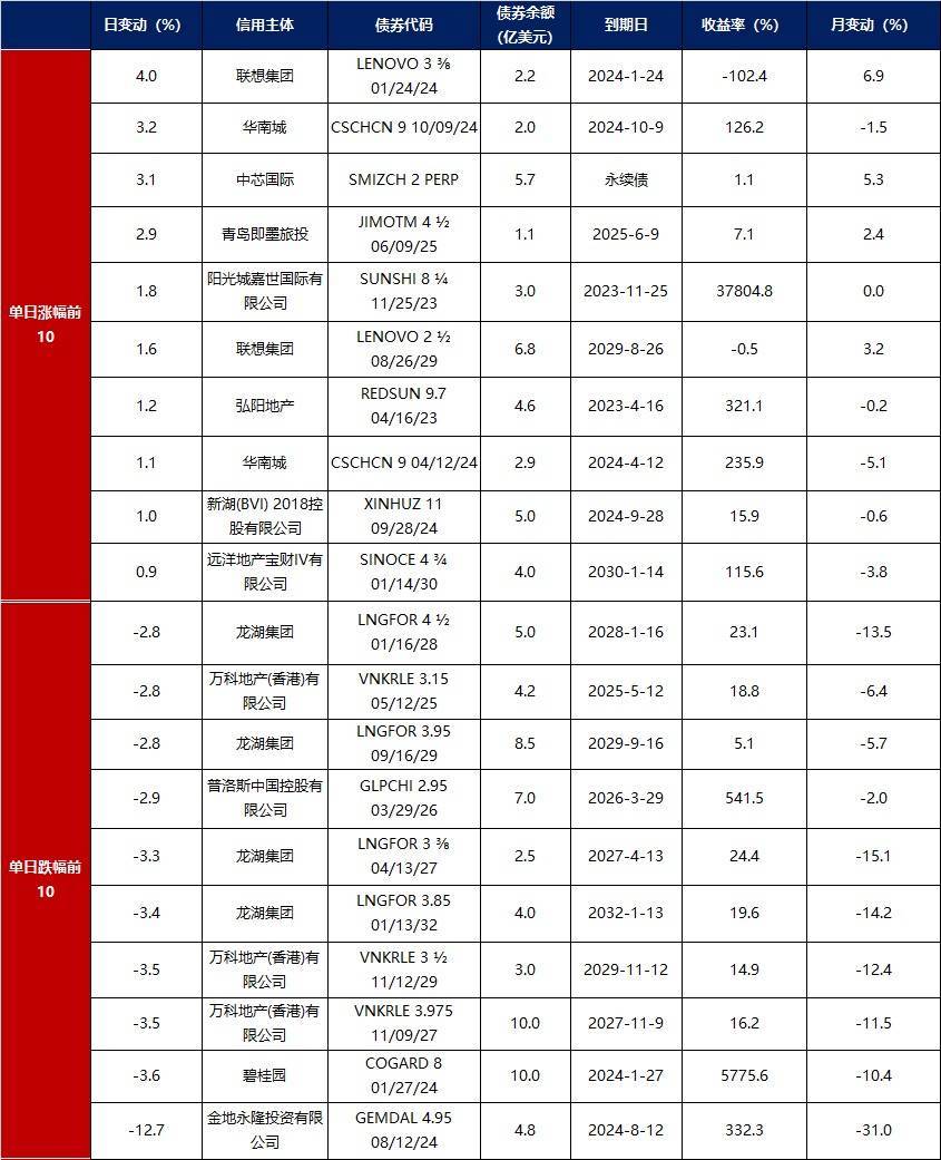 3.中资美元债每日价格变动(截至5月27日收盘)